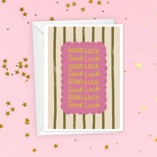 Bold & Playful Good Luck Card – Stripes & Scalloped Design
