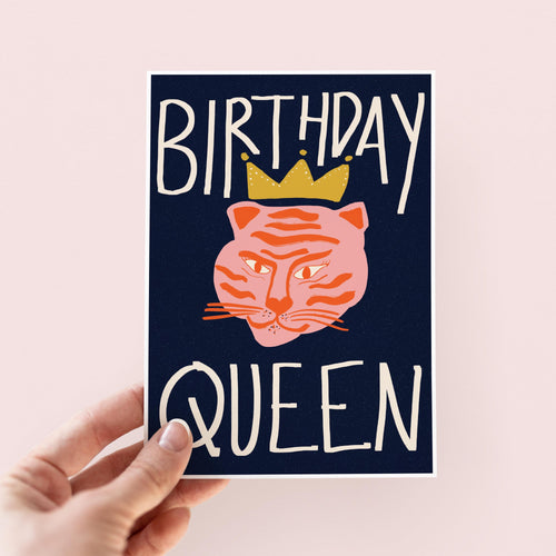 Birthday Queen Illustrated Tiger Birthday Card - Birthday Card For Her - For Friend