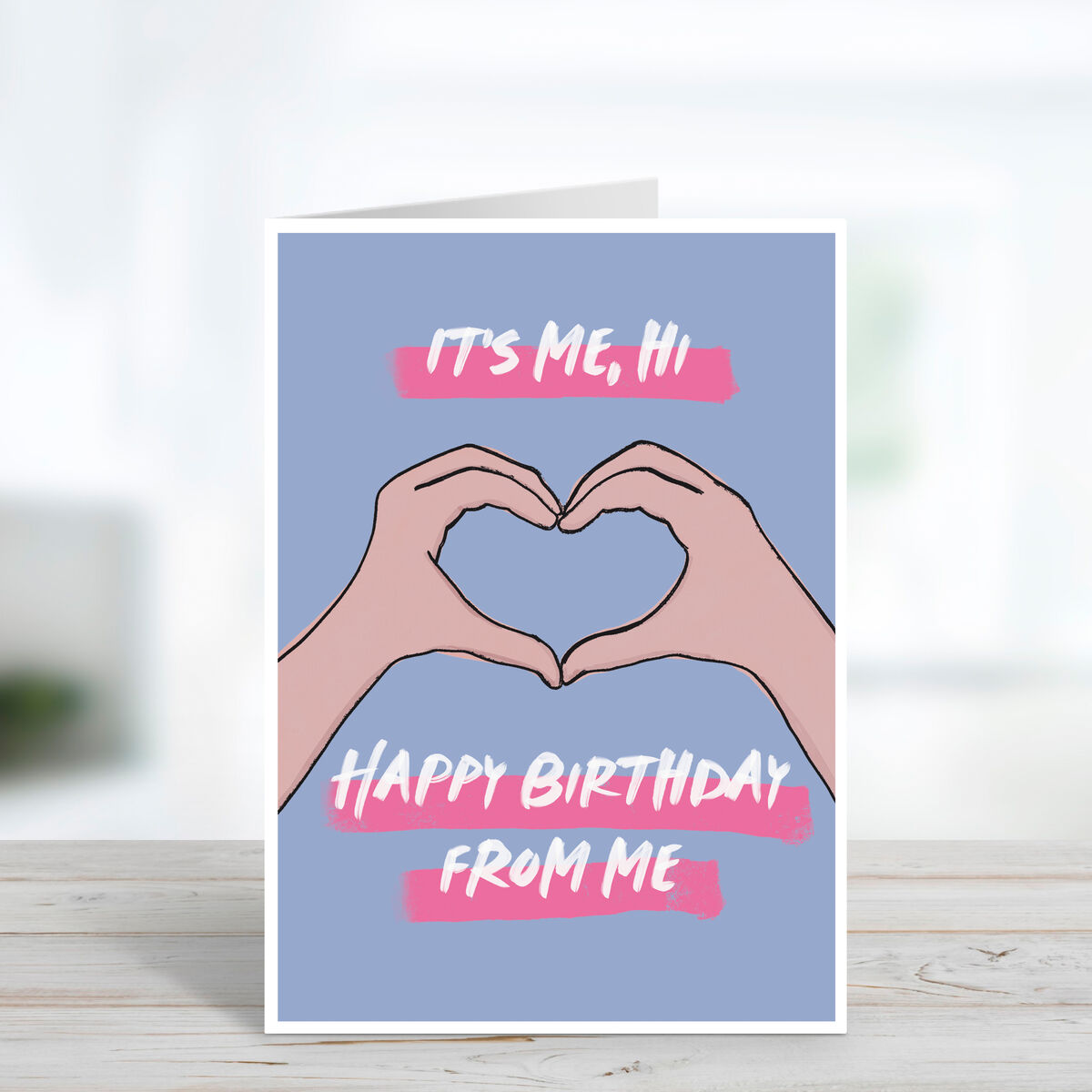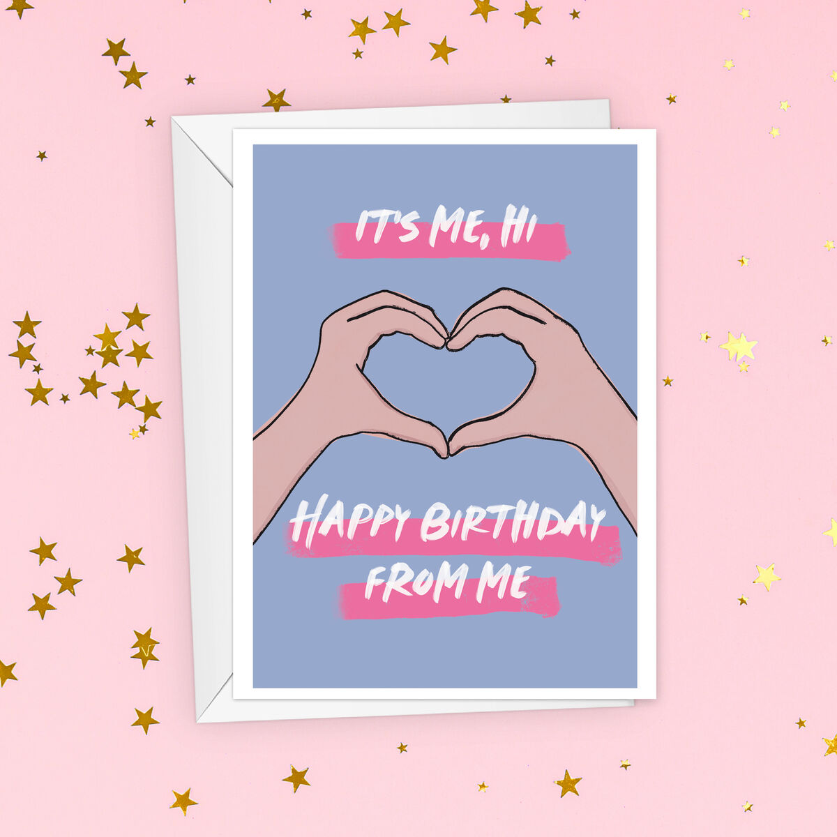 A fun birthday card, perfect for all those Taylor Swift fans out there. They all know the importance of the heart hands symbol!