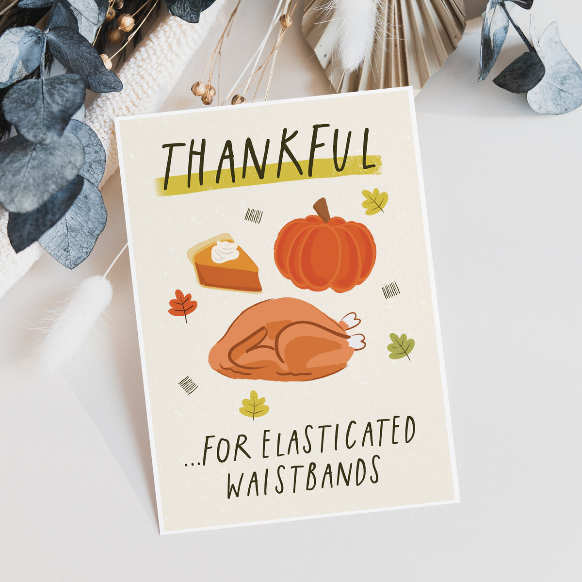Thankful for elasticated waistbands funny Thanksgiving card.