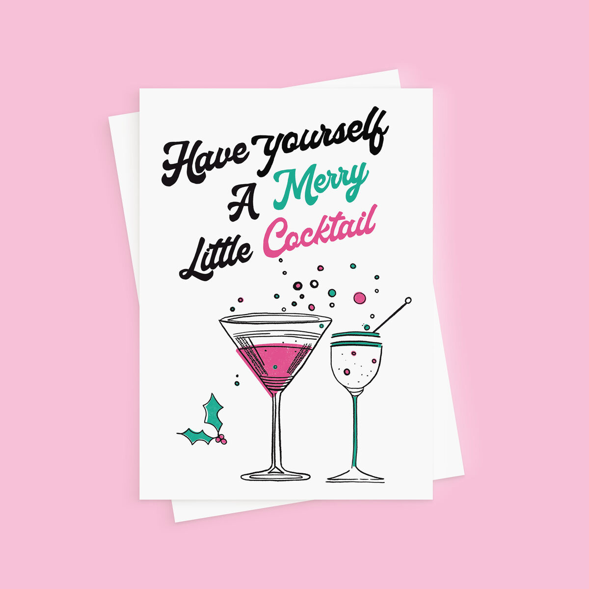 Have Yourself A Merry Little Cocktail Retro Style Christmas Card.