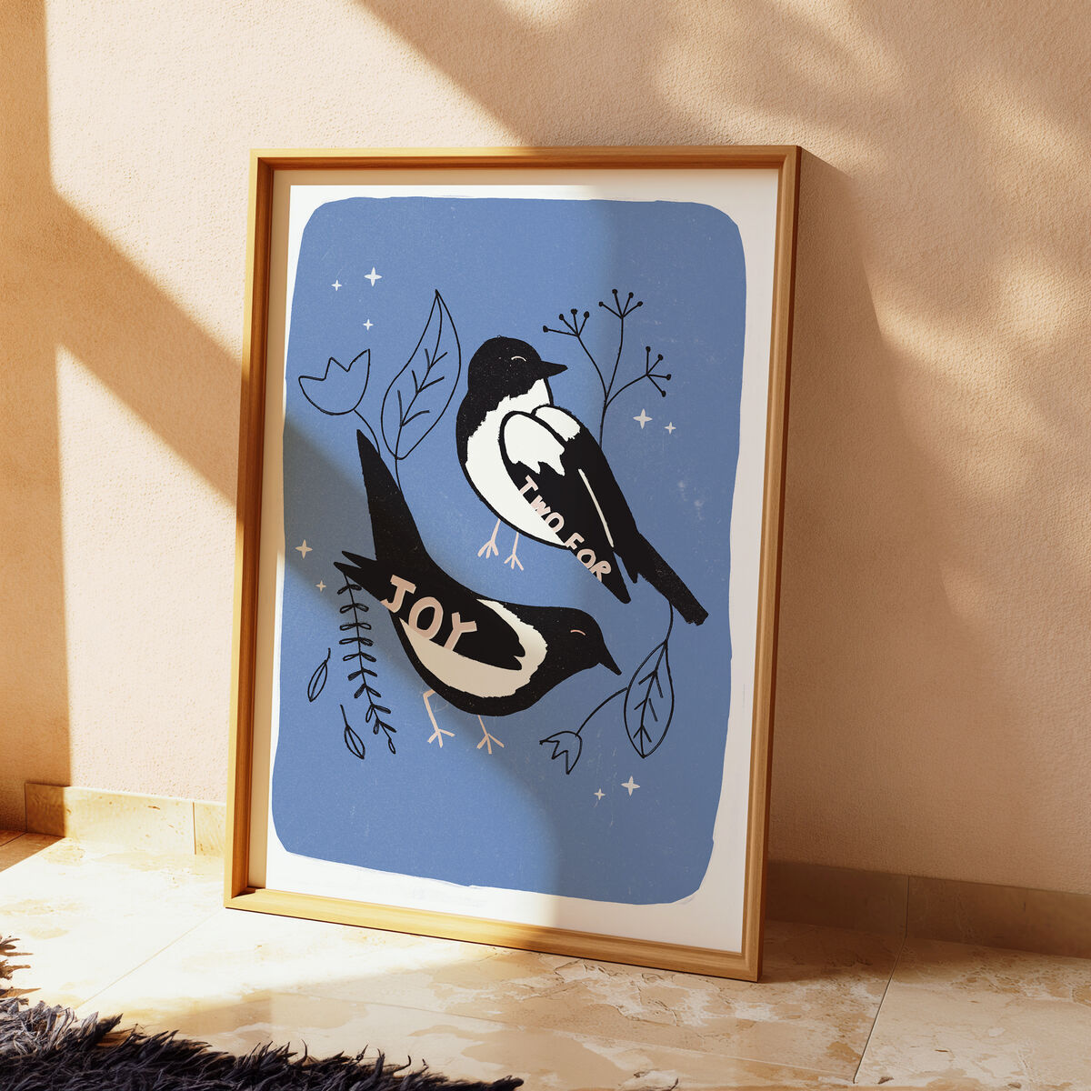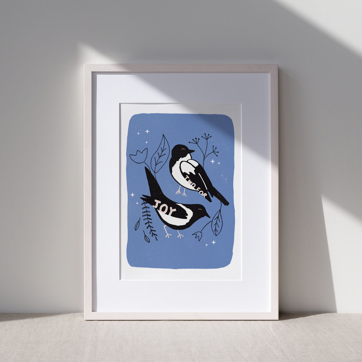 One For Sorrow, Two For Joy. Spread joy with this illustrated art print of two magpies.