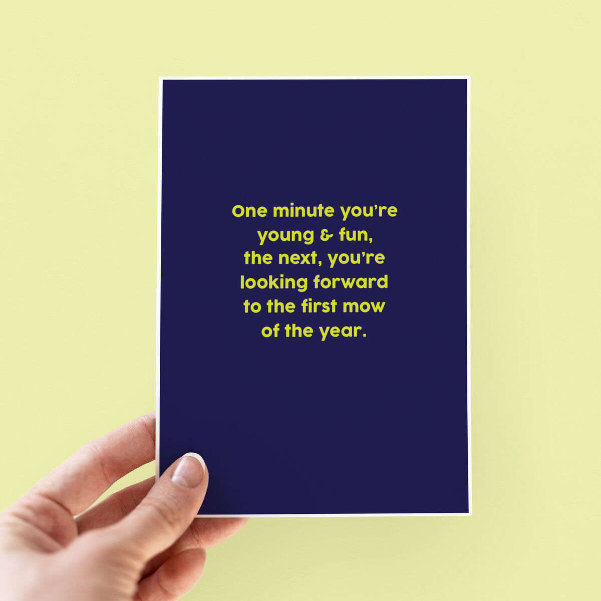 One minute you're young and fun, then next, you're looking forward to the first mow of the year.