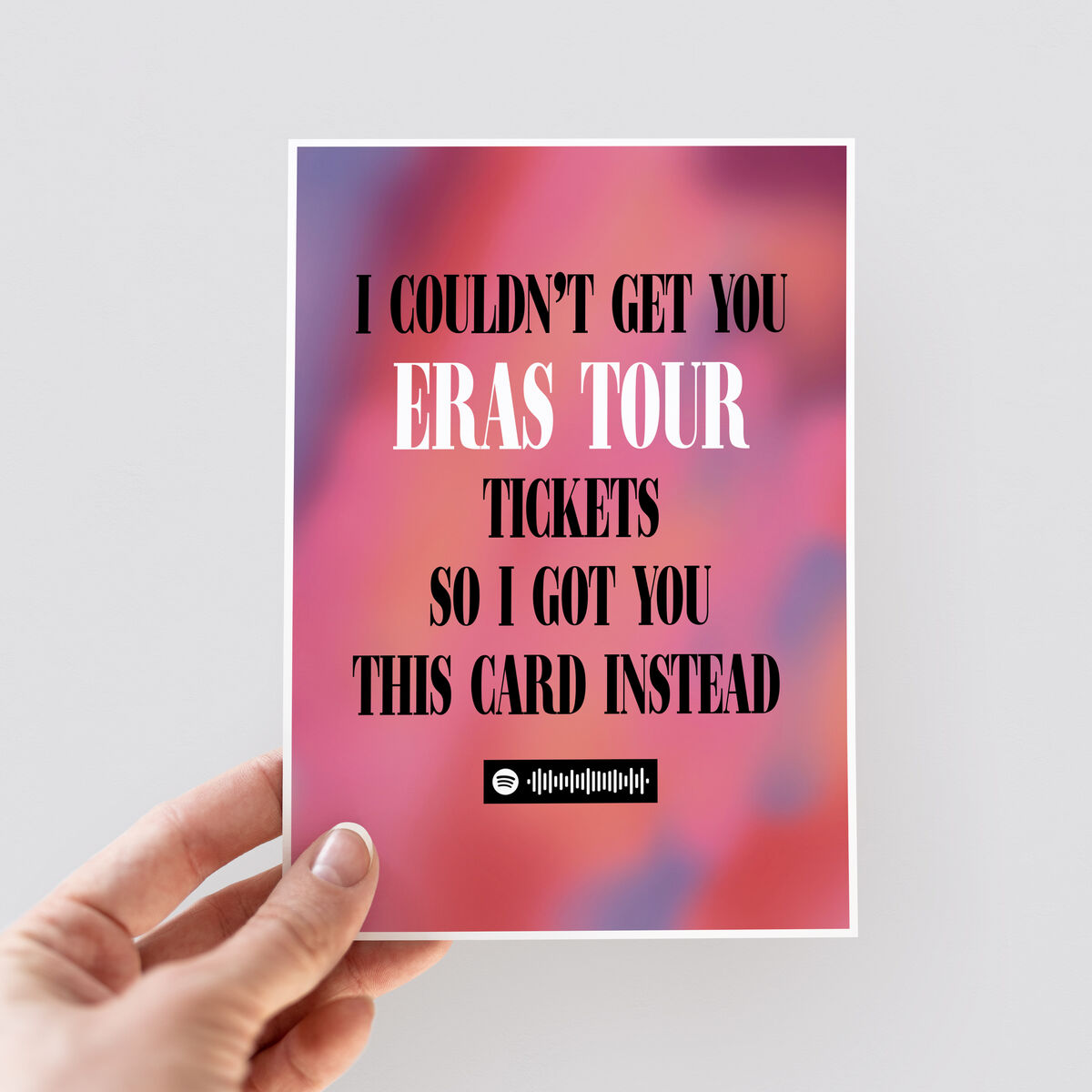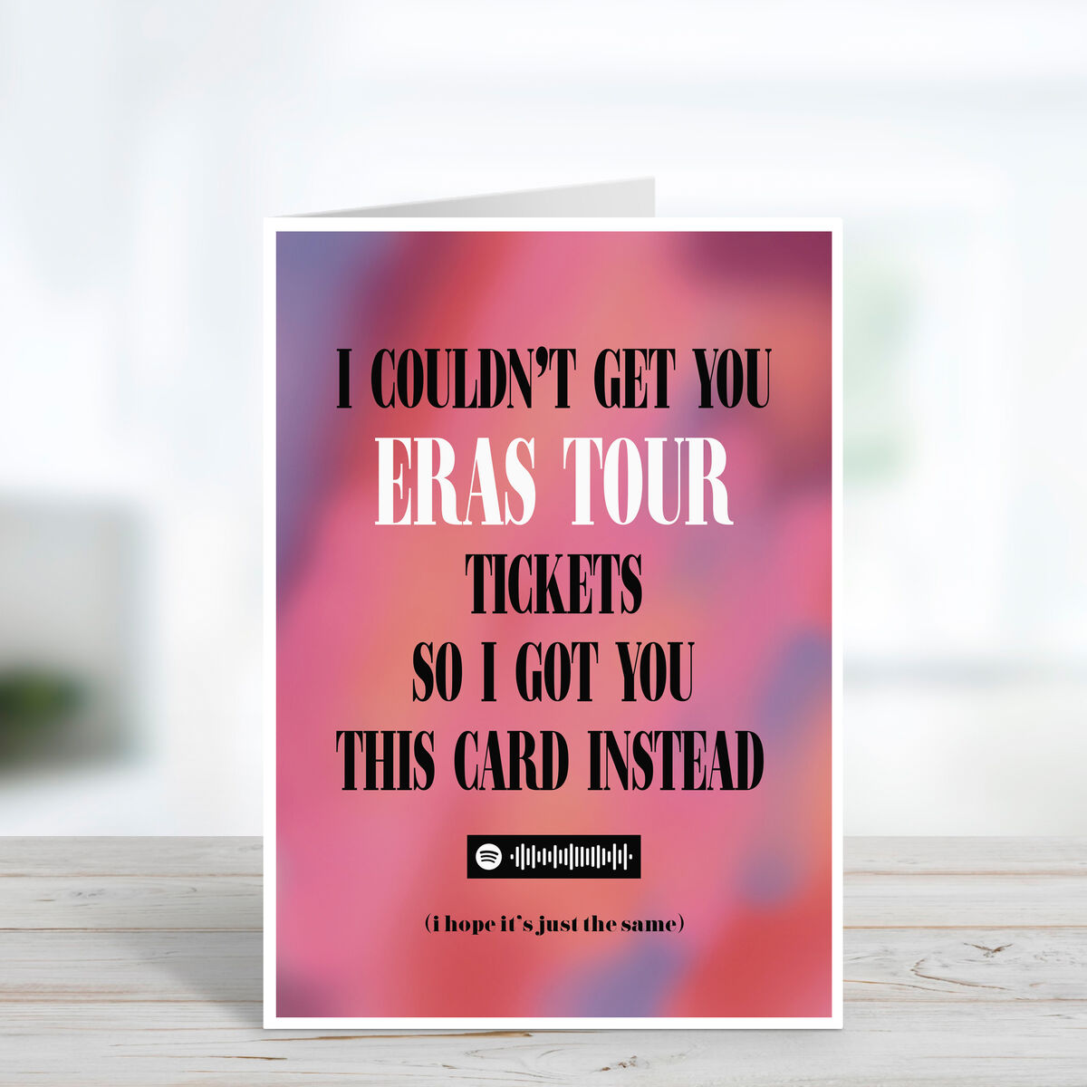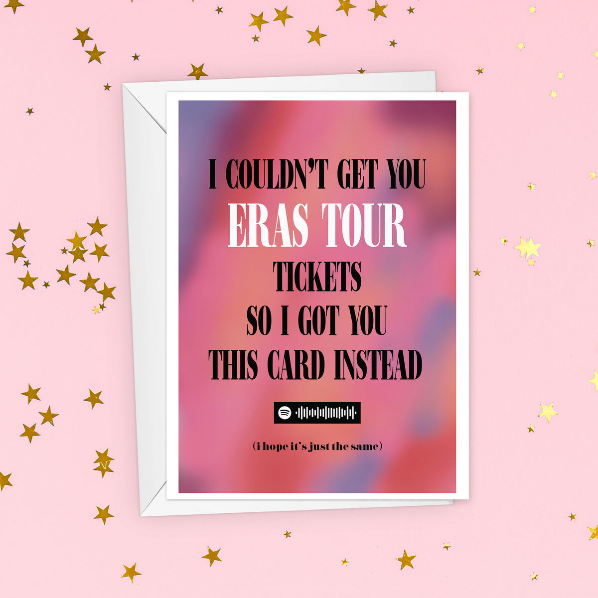 Know a friend that didn't manage to get Eras Tour tickets? Then cheer them up with the birthday card that has a Spotify link that they can scan and go straight to the Eras Tour set list.