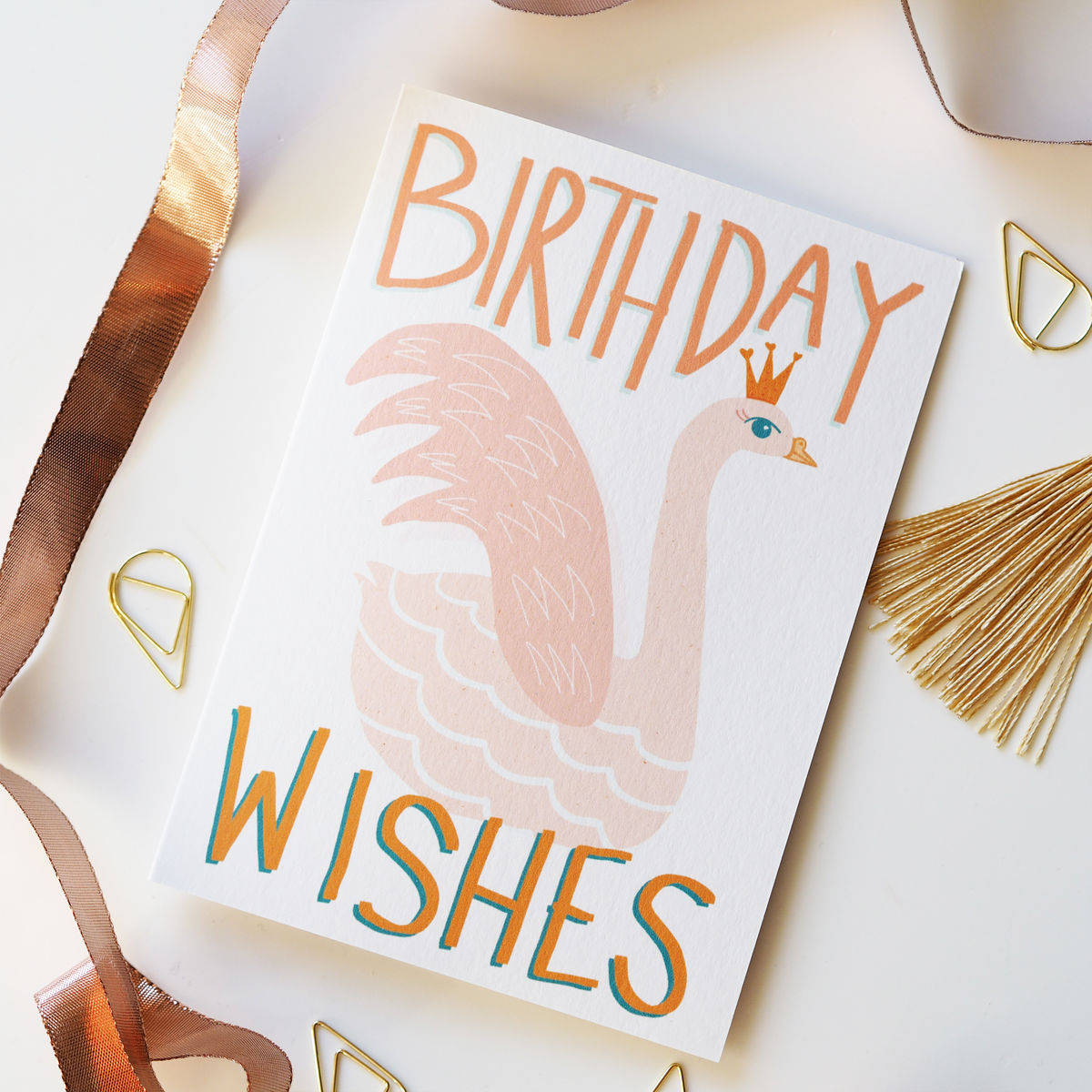 Send birthday wishes to the birthday girl with this gorgeous swan birthday card.