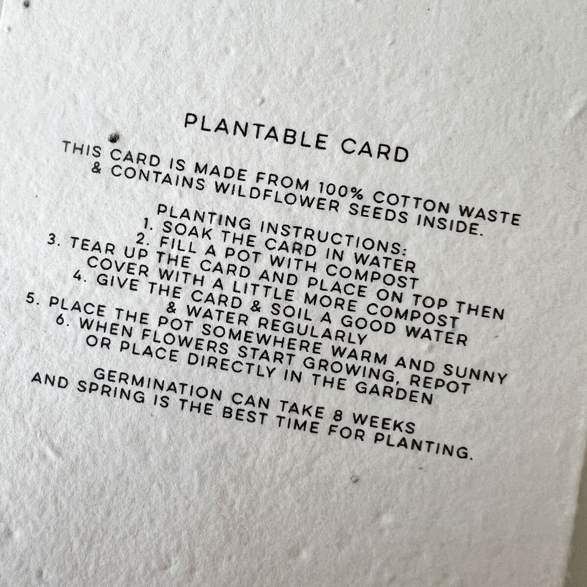 If you have lost your mum, a plantable card can be a wonderful way to still celebrate them. Write your message inside, and then follow the instructions on the back of the card to plant the wild flower seeds that are embedded within the card.