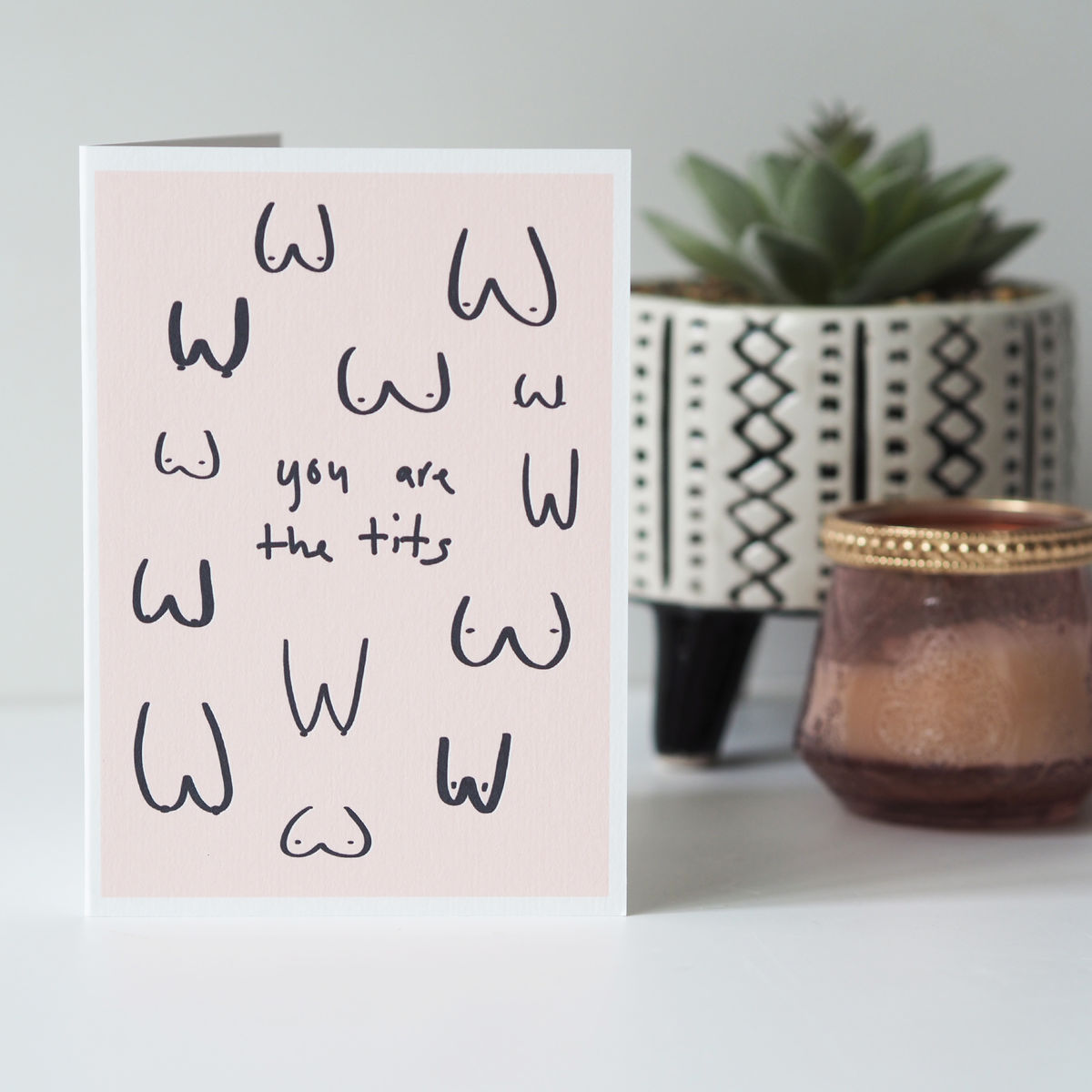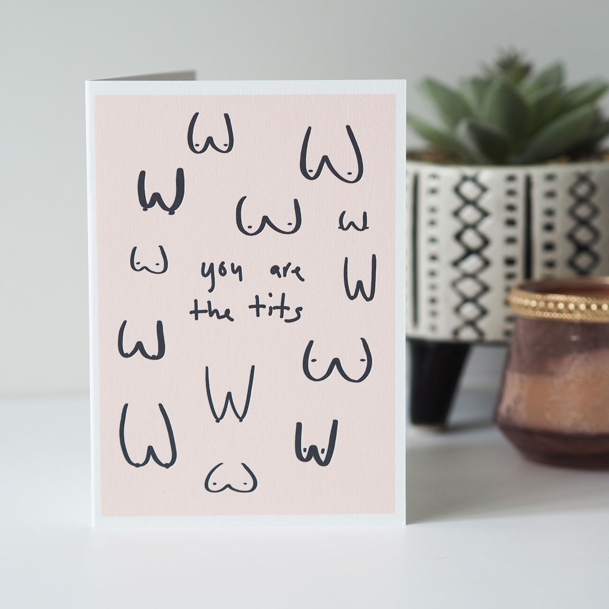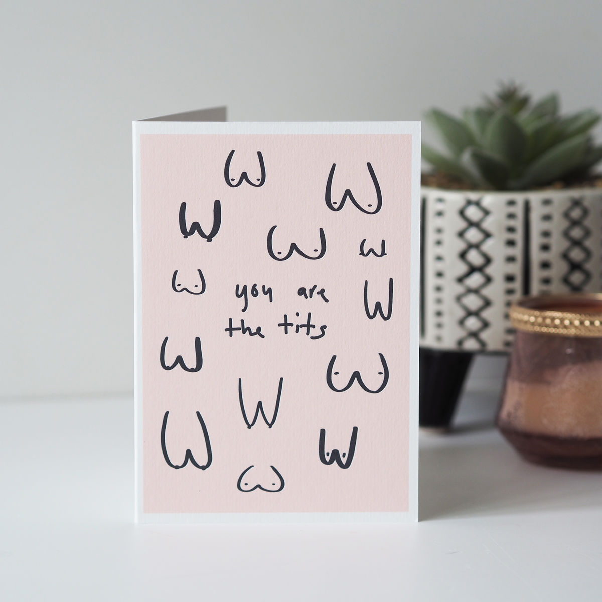 Say well done, congrats, hooray on your new job, with this witty You Are The Tits hand illustrated card.