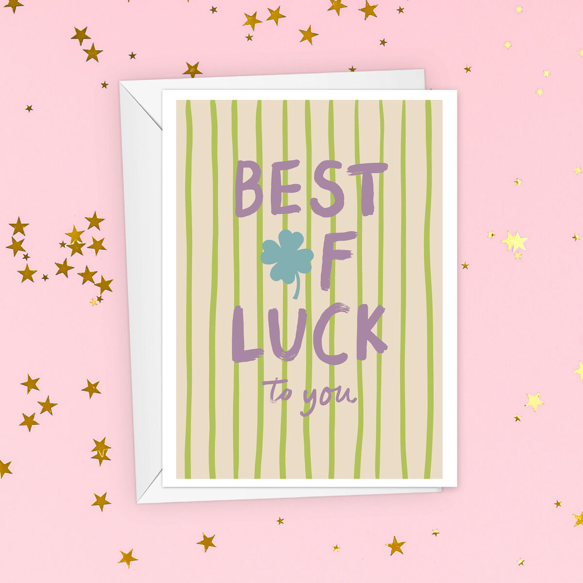 With its bold typography, playful green stripes, and a lucky four-leaf clover, it’s the perfect way to cheer someone on—whether they’re heading into exams, starting a new job, or embarking on an exciting adventure.