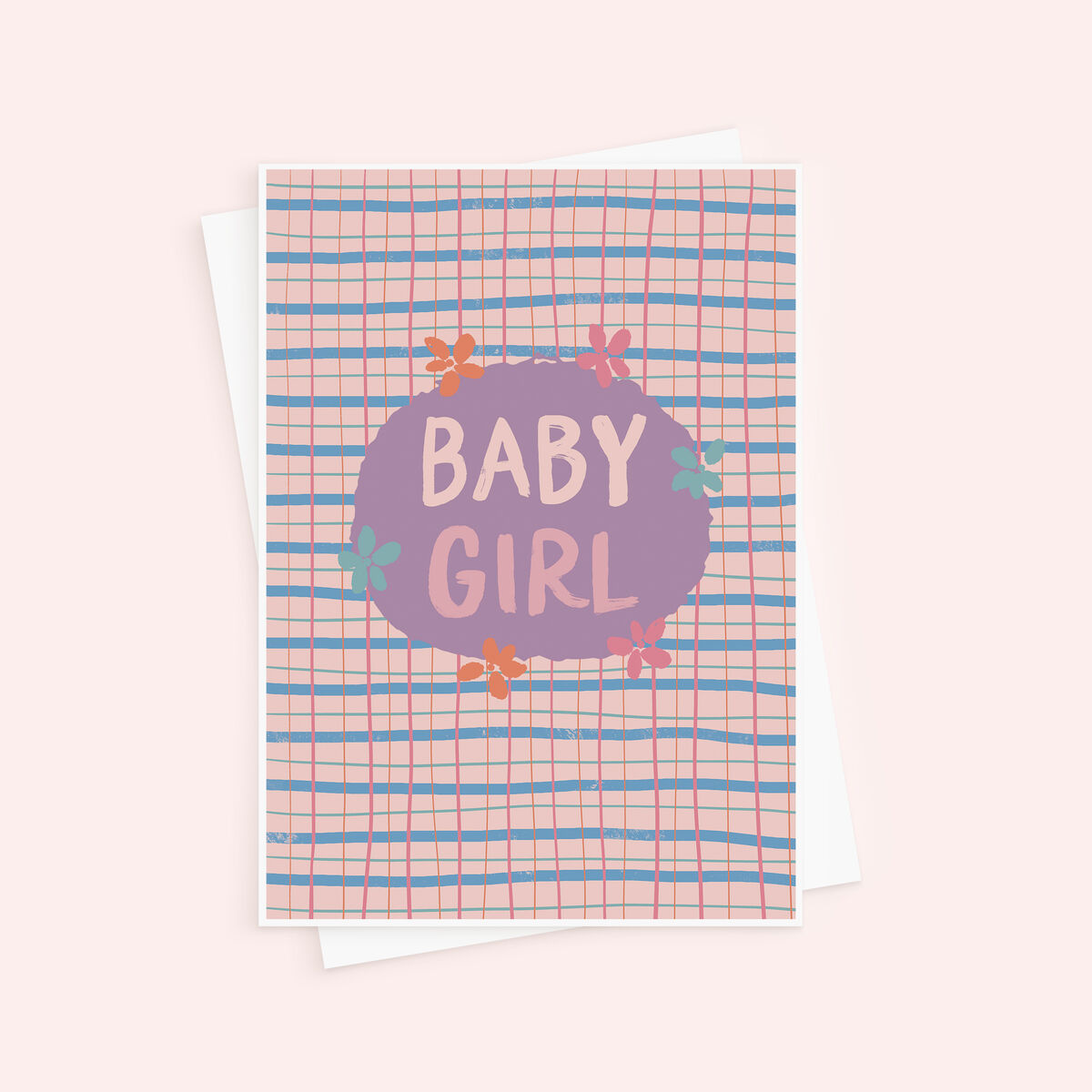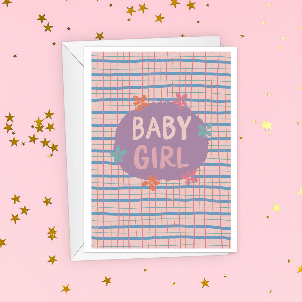 Celebrate the arrival of a new baby girl with this beautifully designed new baby card.