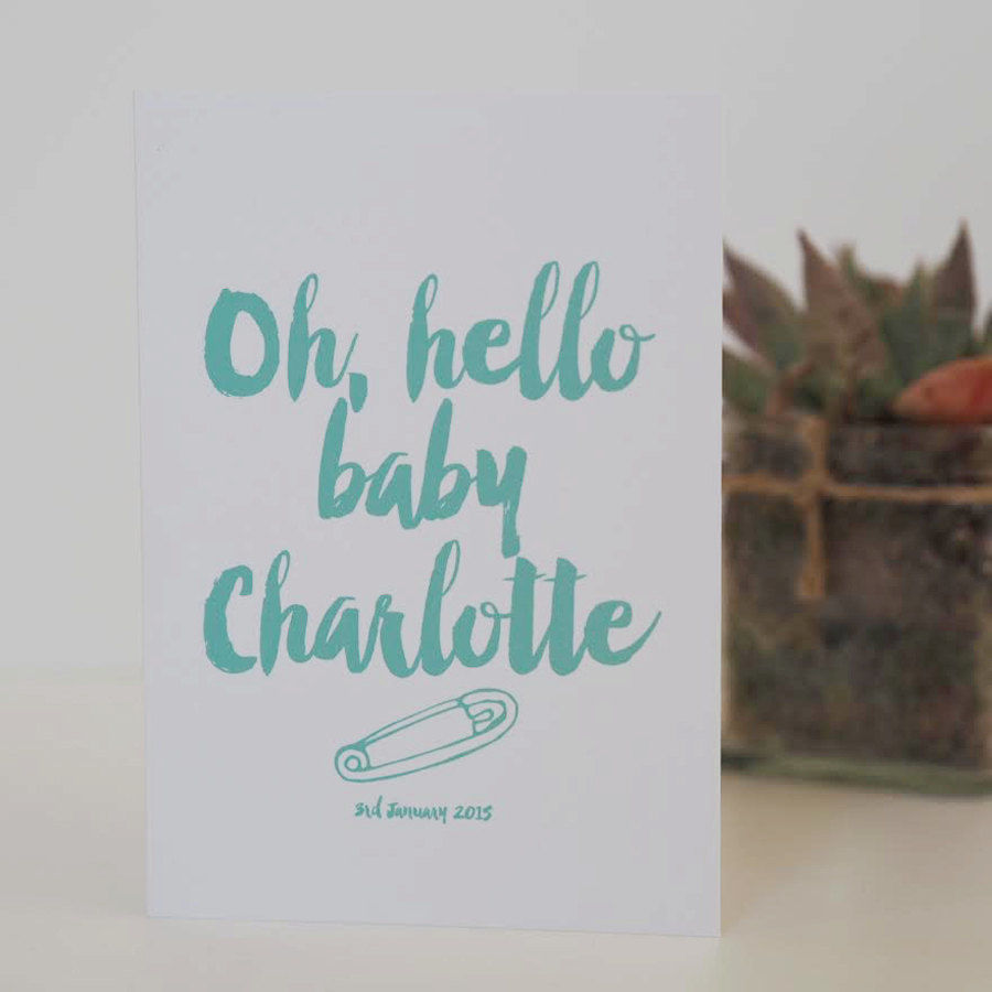 'Oh Hello Baby!' Personalised card to welcome that new bundle of joy in to the world!
