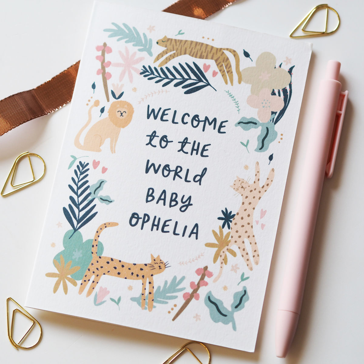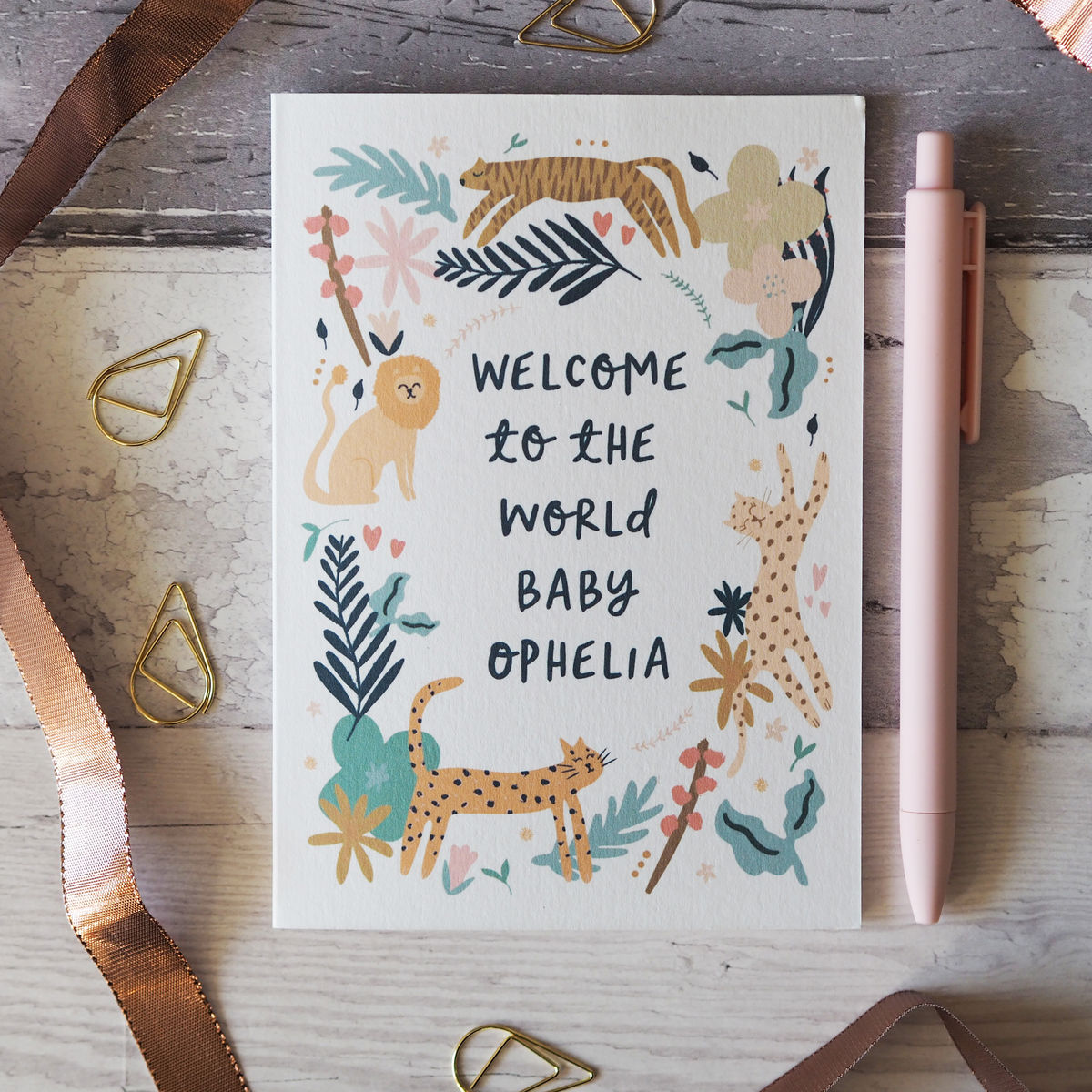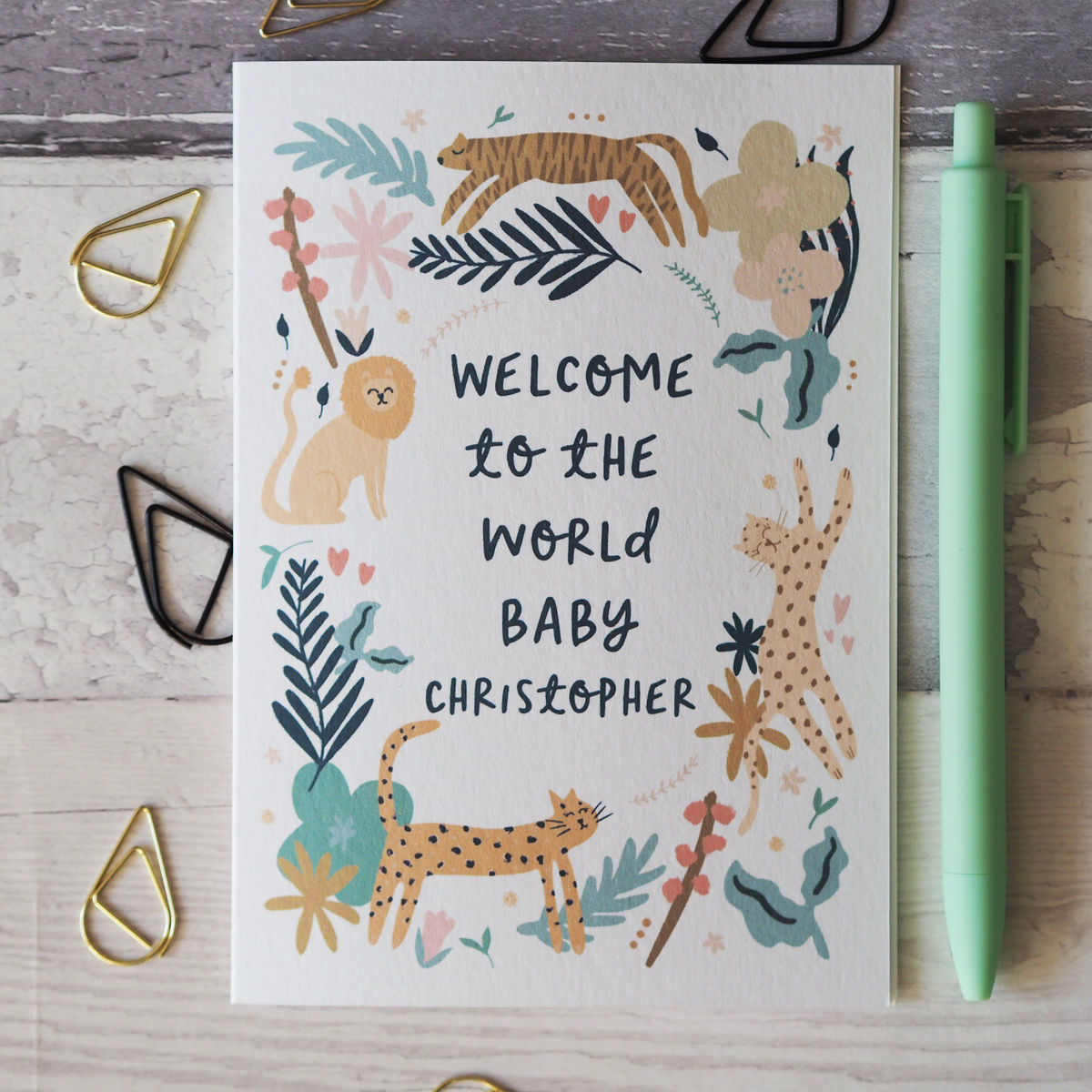 This hand illustrated celebrates the special new addition of a baby to a family, with gorgeous illustrations of leopards, a tiger and a lion.