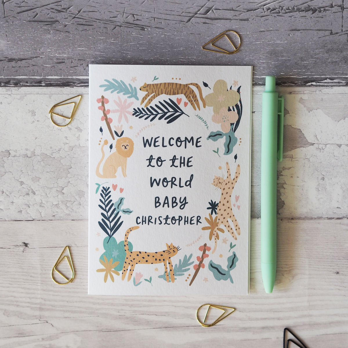 Welcome To The World personalised new baby card.