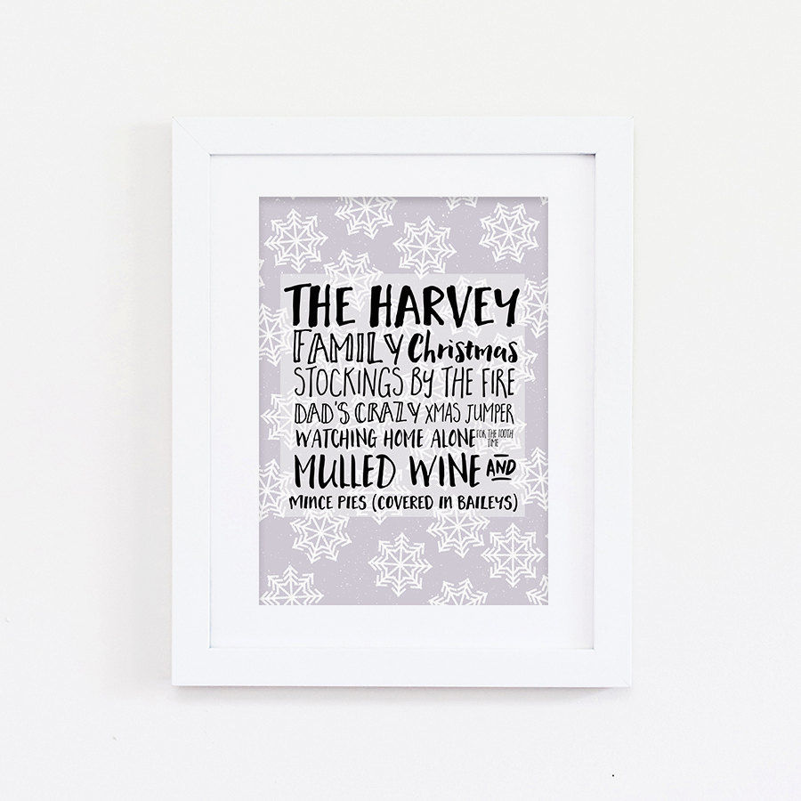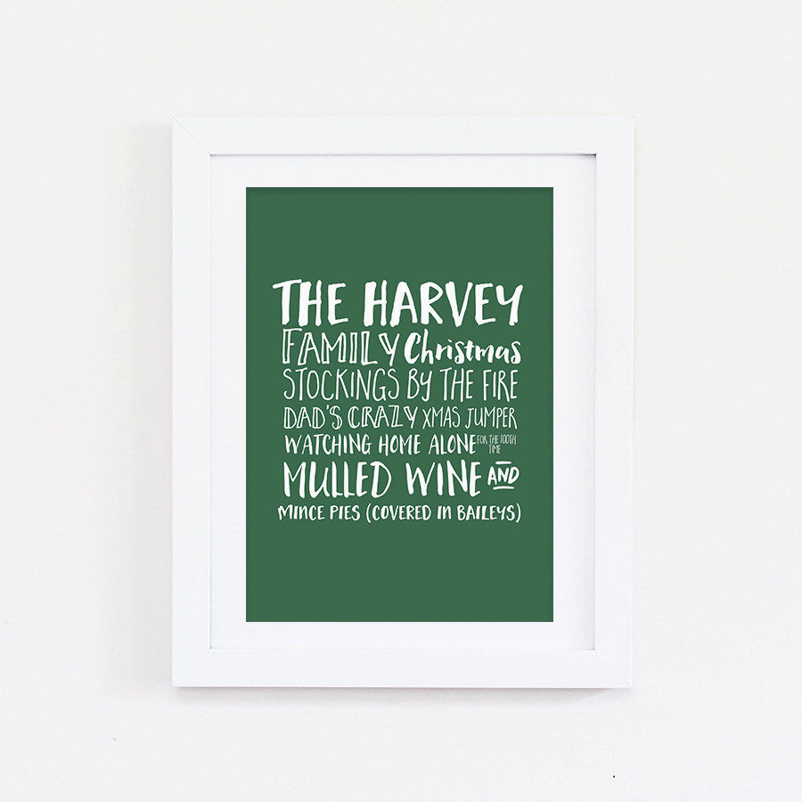 A fun, personalised Christmas print, showcasing all the best bits of Christmas for you and your family!