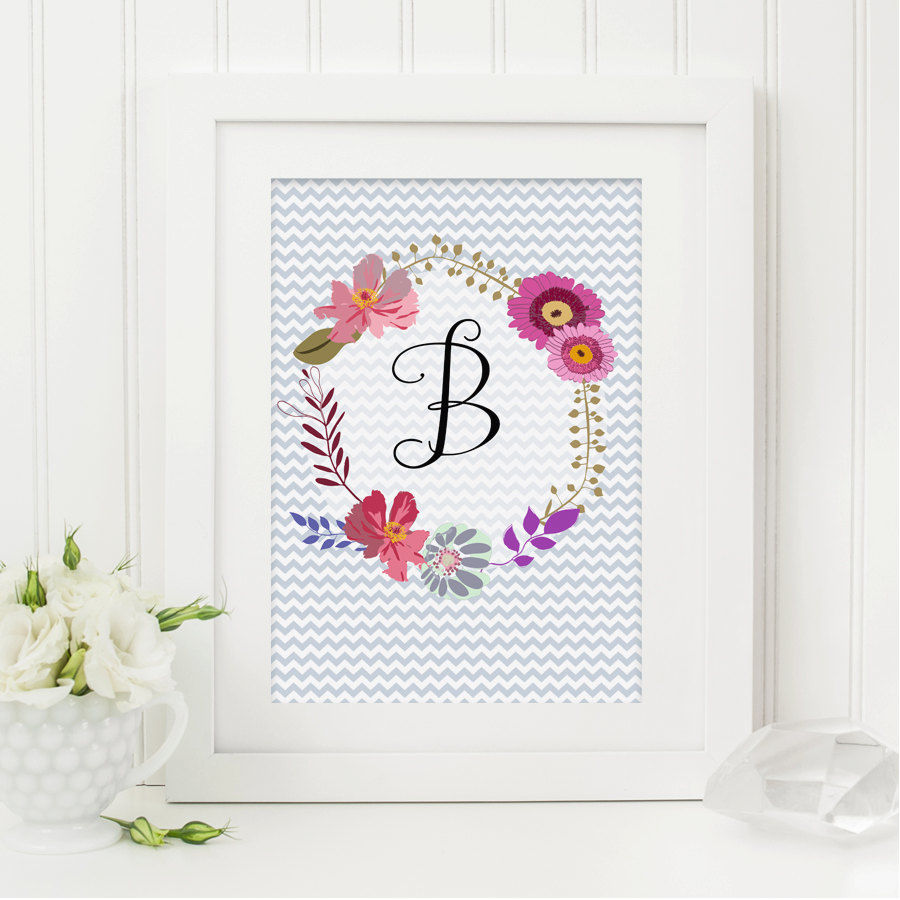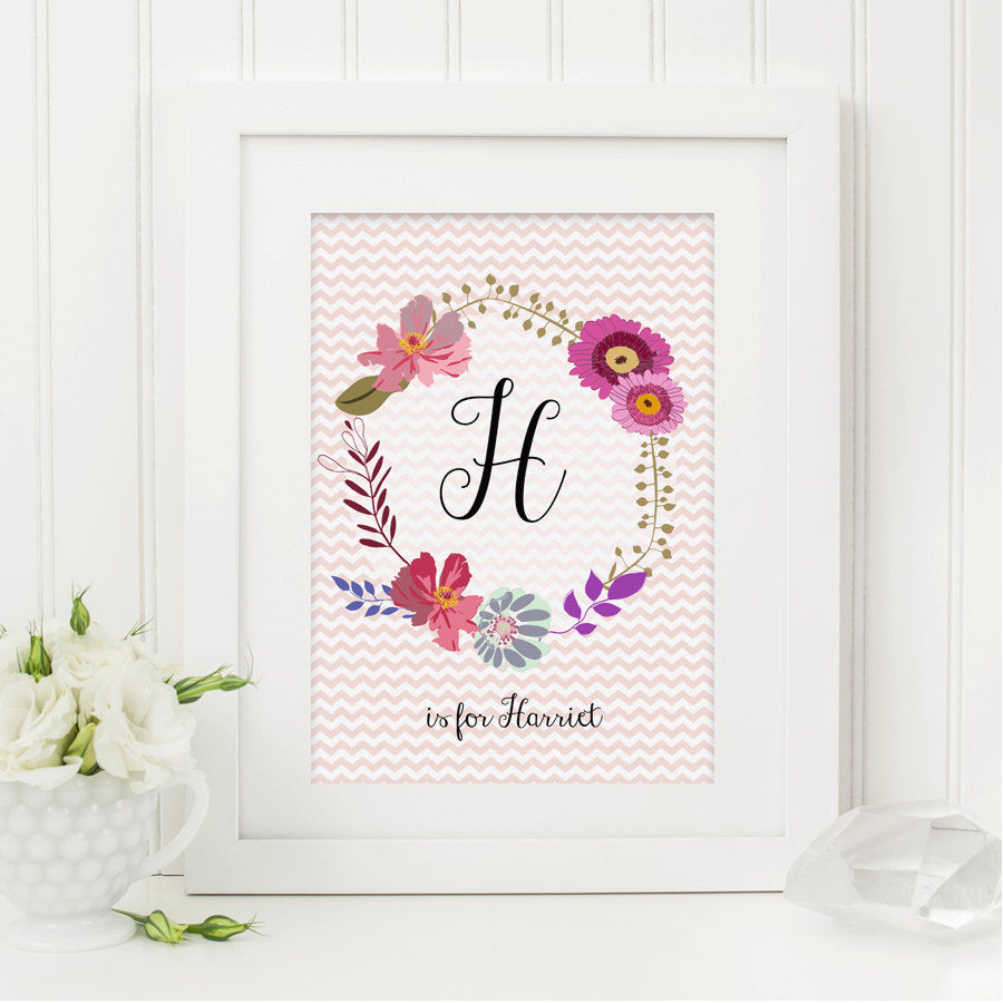 Floral Monogram Print - Personalised Print - Girls Print - Little Girls Gift - New Baby Gift - Nursery Print - Baby Gift - Baby Girl Gift listed in: