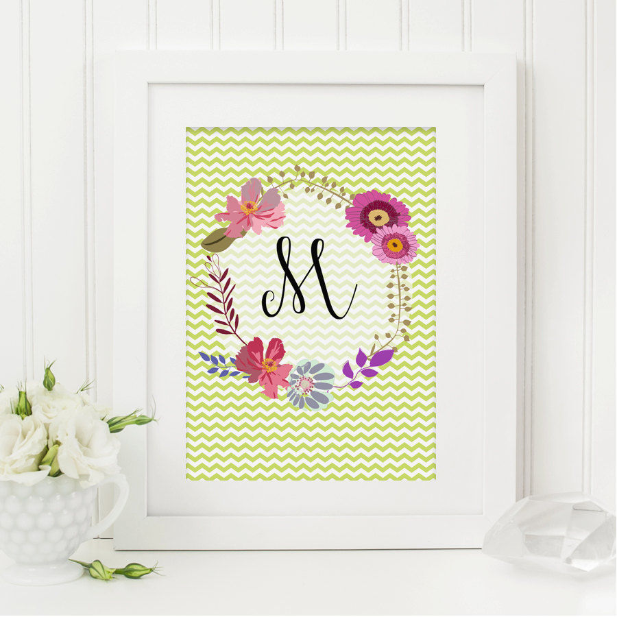 A beautiful floral monogram print, with a choice of coloured chevron backgrounds.
