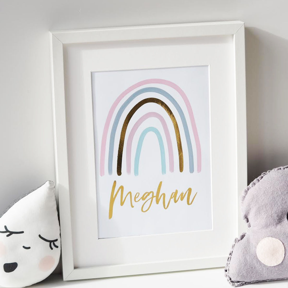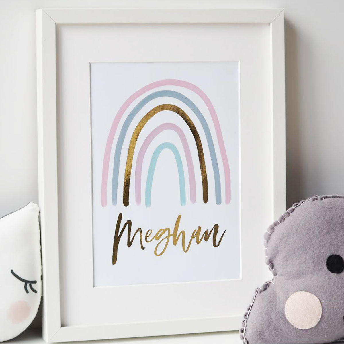 This subtle rainbow print has touches of real gold foil and can be personalised with any first name, making it an ideal addition to any bedroom or nursery, and can be even be a beautiful new baby gift.