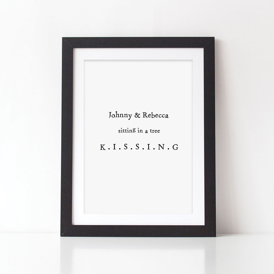 Kissing Valentines Print - Romantic Print - Personalised Print - Sitting In A Tree listed in: