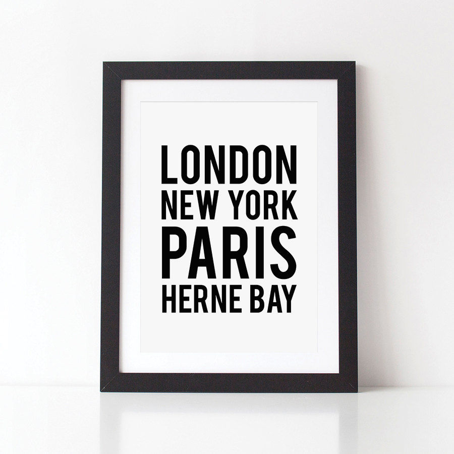 Location Print - Personalised Print - Black and White Print - London New York Print - Typography Print listed in: