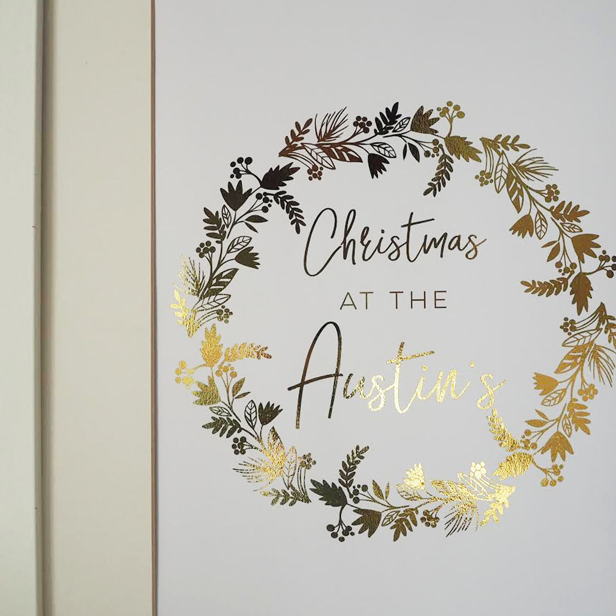 Personalised Gold Foil Family Christmas Wreath Print.