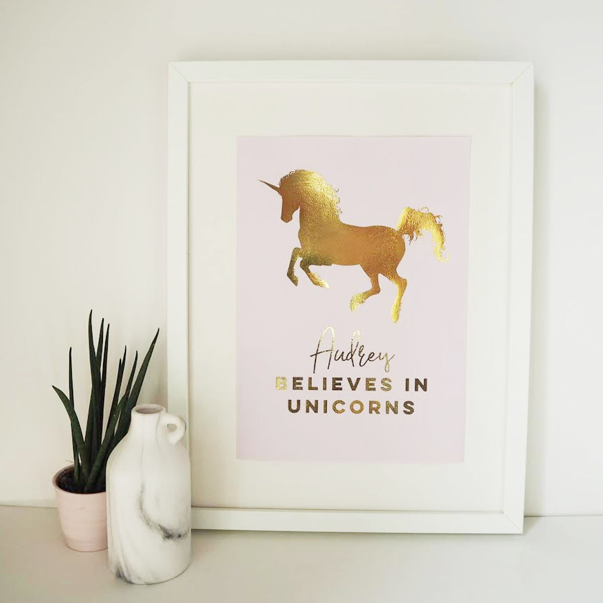 This gorgeous gold foil unicorn print can be personalised with any name, making it a wonderful addition to any children's bedroom or nursery. It would even make a lovely new baby gift.