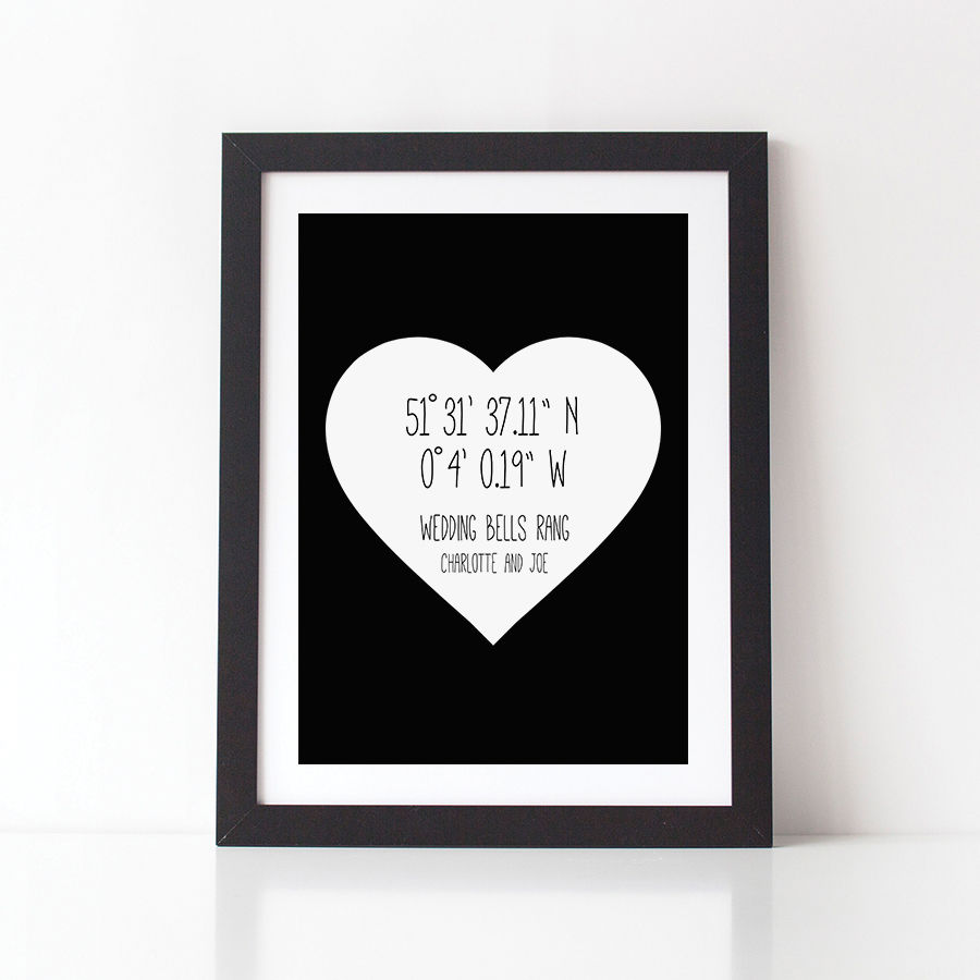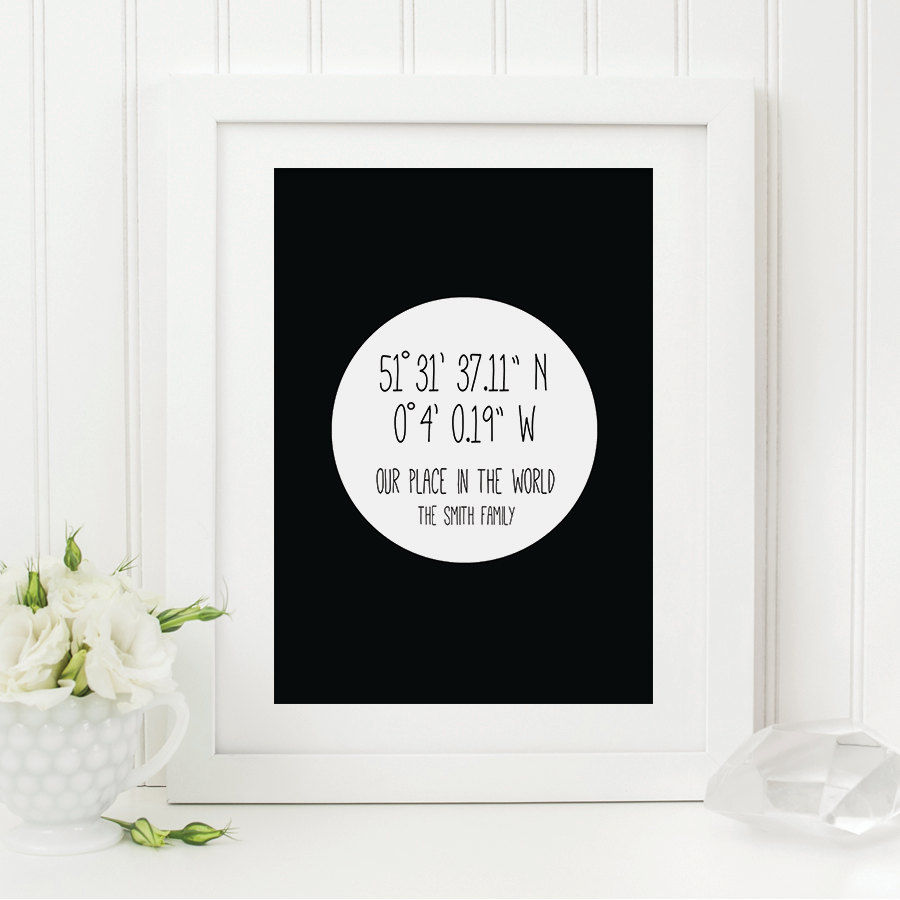 Personalised Co-Ordinates Print - New Home Gift - Personalised Print - Monochrome Print - Location Print - New Home Print - Romantic Print listed in: