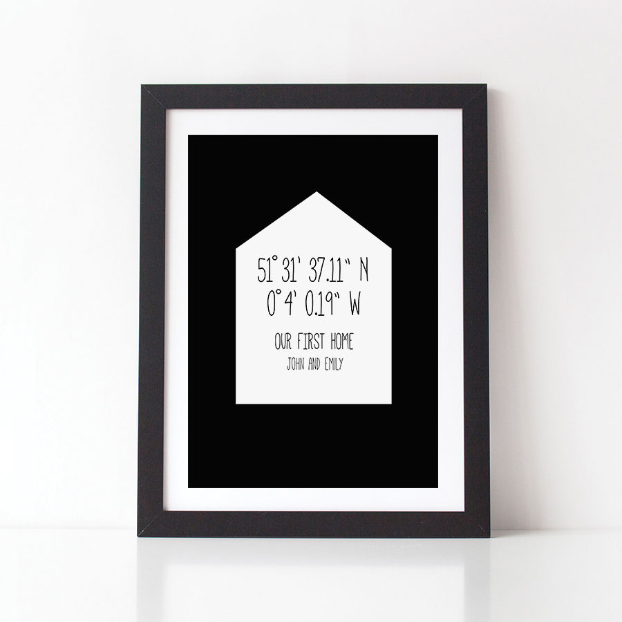 Personalised Co-Ordinates Print - New Home Gift - Personalised Print - Monochrome Print - Location Print - New Home Print - Romantic Print