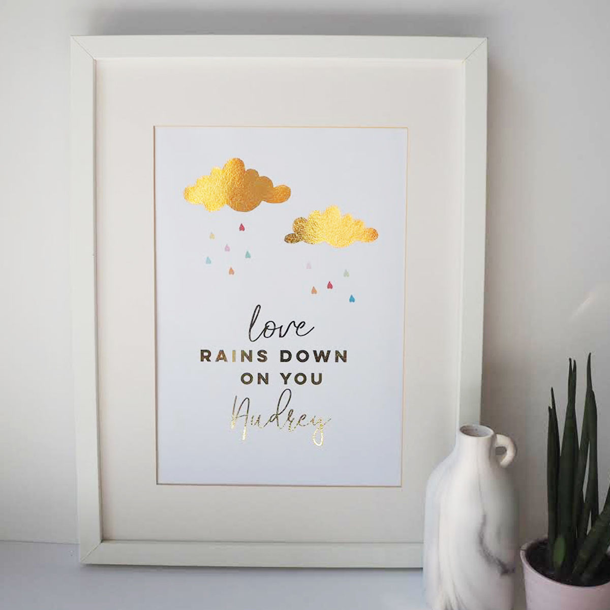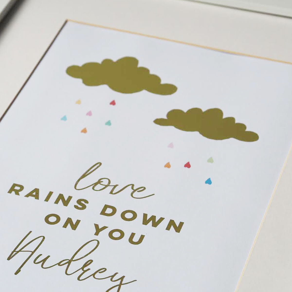 Personalised Love Rains Down On You Gold Foil Print - Real Gold Foil Print - Personalised Gold Foil Print - Nursery Print - Children's Print listed in: