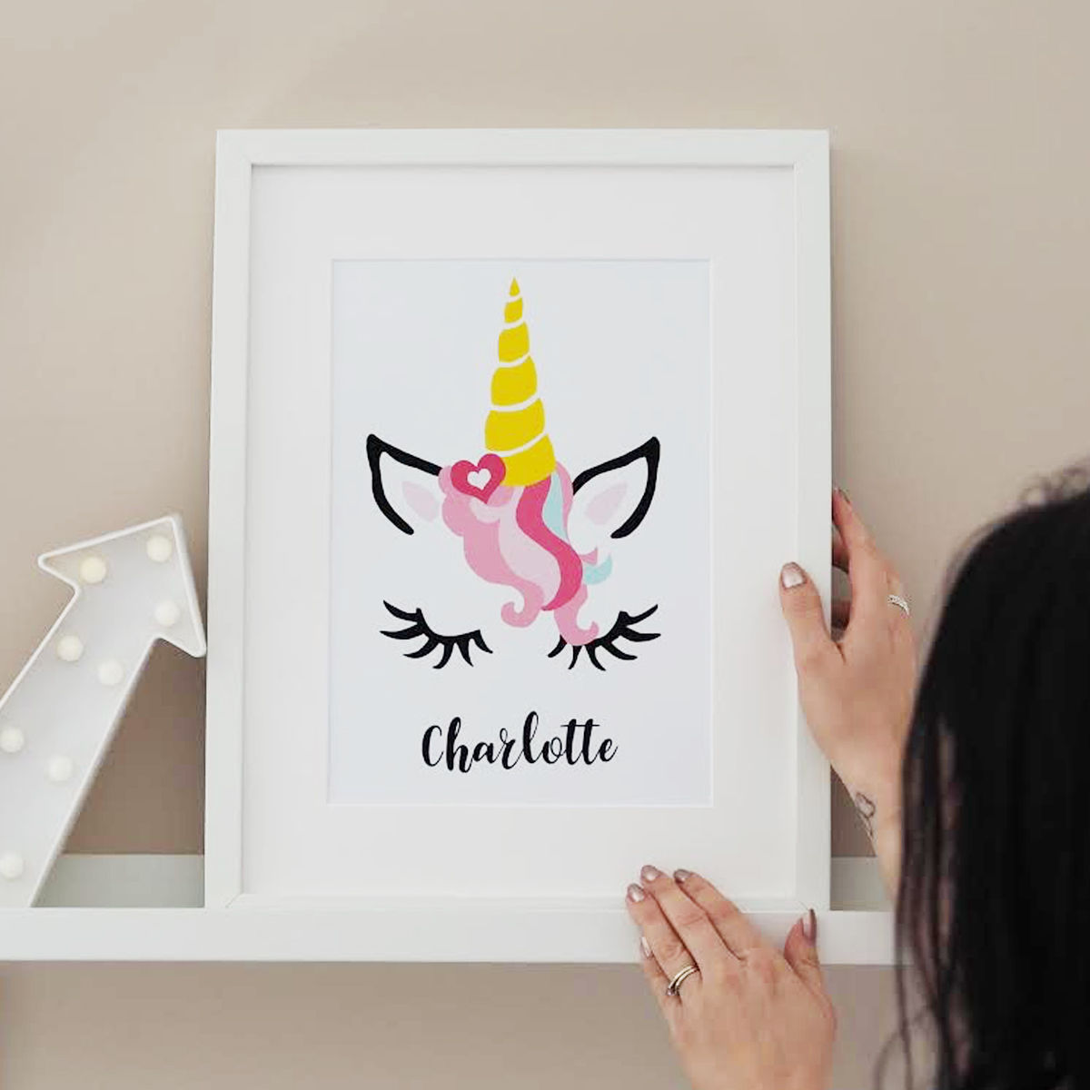 Personalise this hand drawn unicorn print with any name, making it an extra special addition to any child's bedroom or nursery.