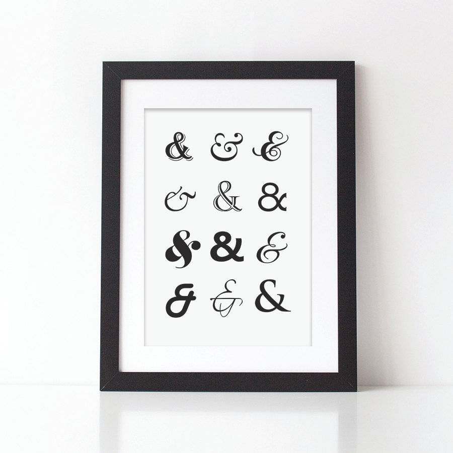 Ampersand, black and white typography print.