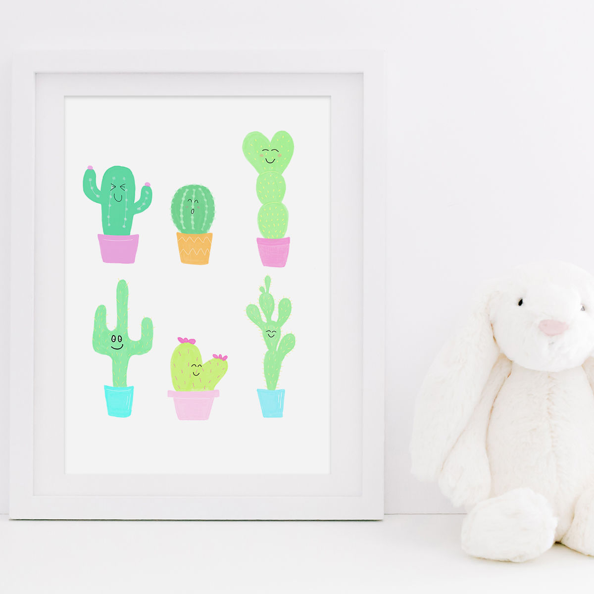 A cute little cactus print, perfect for any cactus or succulent lover. This would also look gorgeous in a nursery or kids play room.