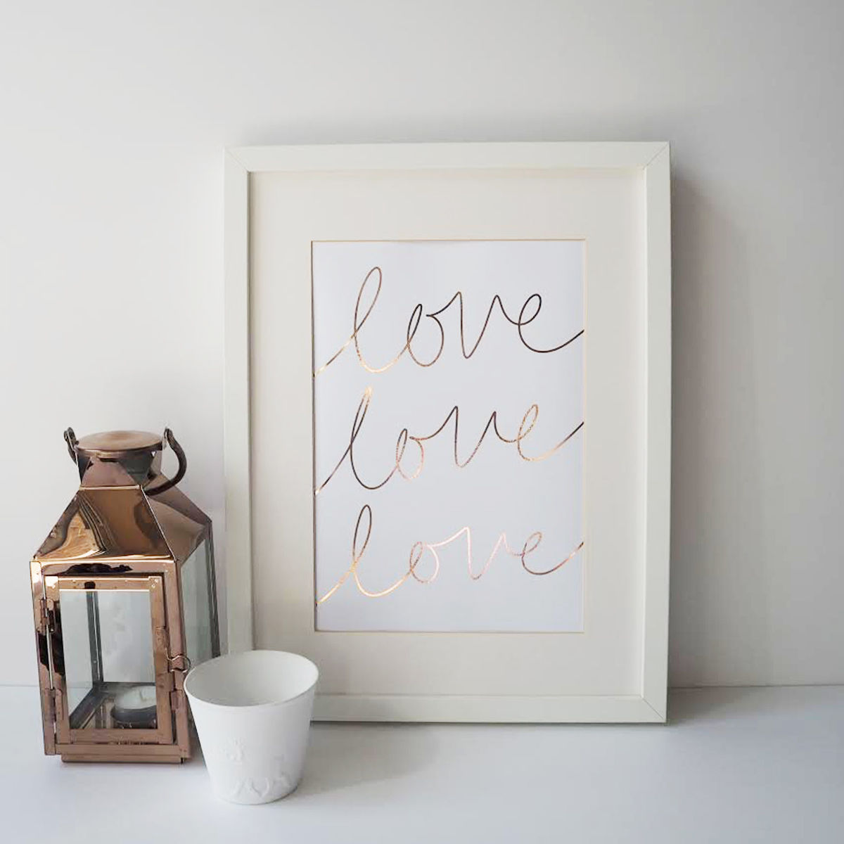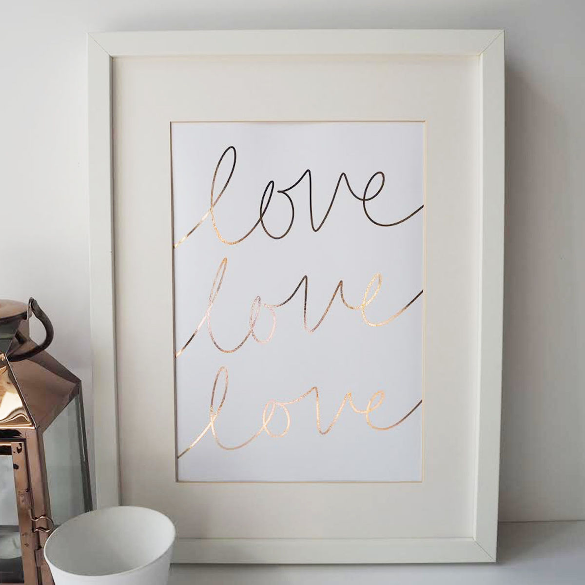Love Typography Gold Foil Print - Love Print - Gold Foil Print - Hand Lettered Typography Print