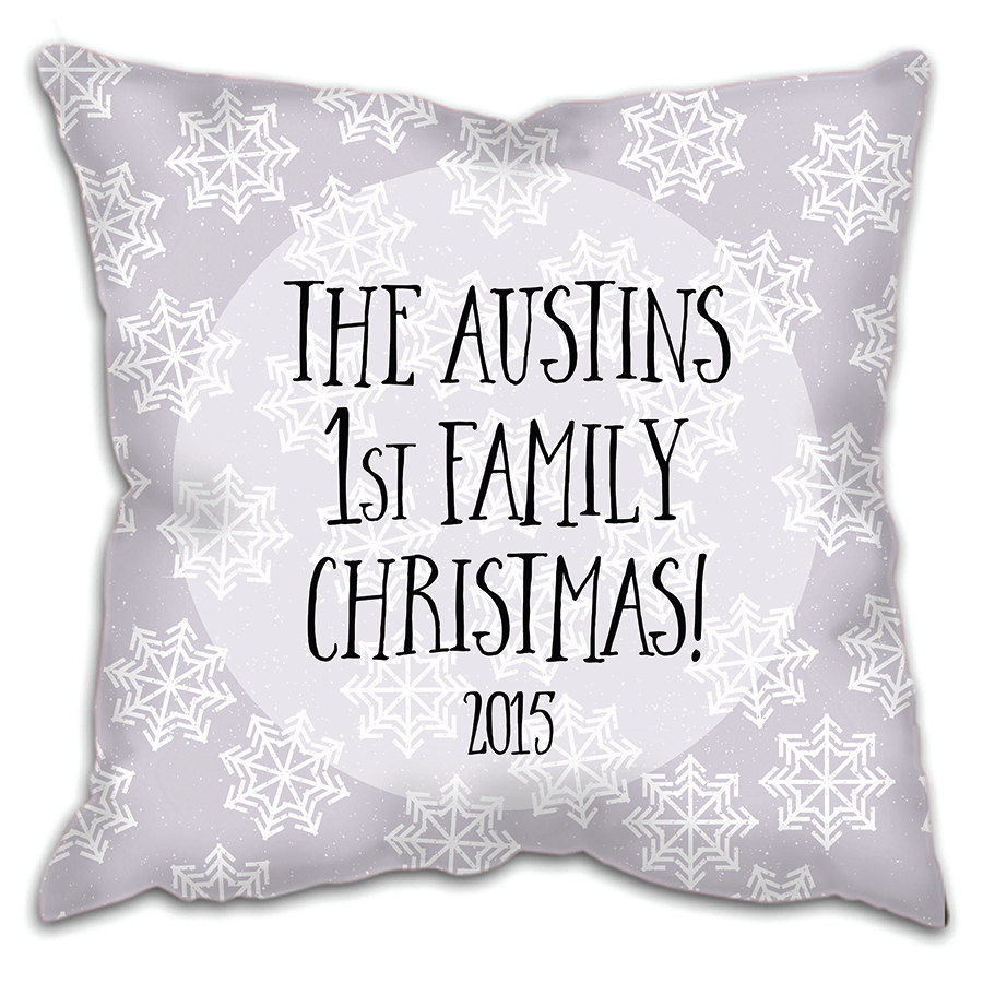 Celebrate that magical first family Christmas with this personalised Christmas cushion.